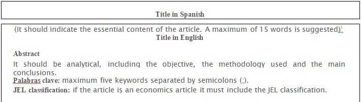- Keywords (maximum 5): these are used for indexing processes. It is preferable to use internationally recognized terms in social sciences and economics. For this, it is convenient to review the UNESCO thesaurus at: http://databases.unesco.org/thess